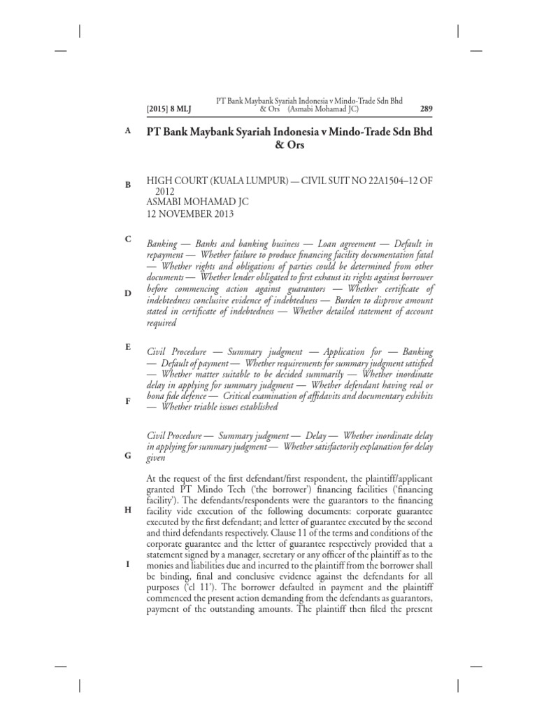 Pt Bank Maybank Syariah Indonesia V Mindo T Guarantee Judgment