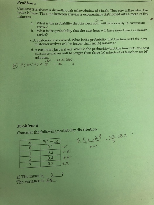 Solved Problem1 Customers Arrive At A Drive Through Telle