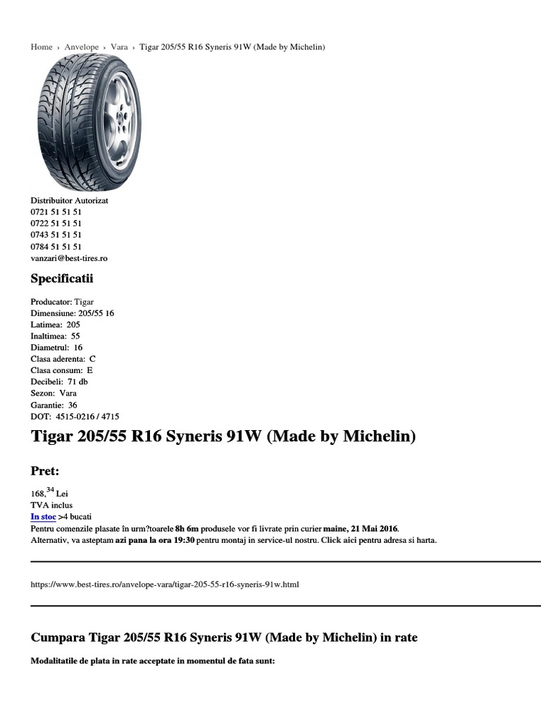 Best Tires Tigar 205 55 R16 Syneris 91w