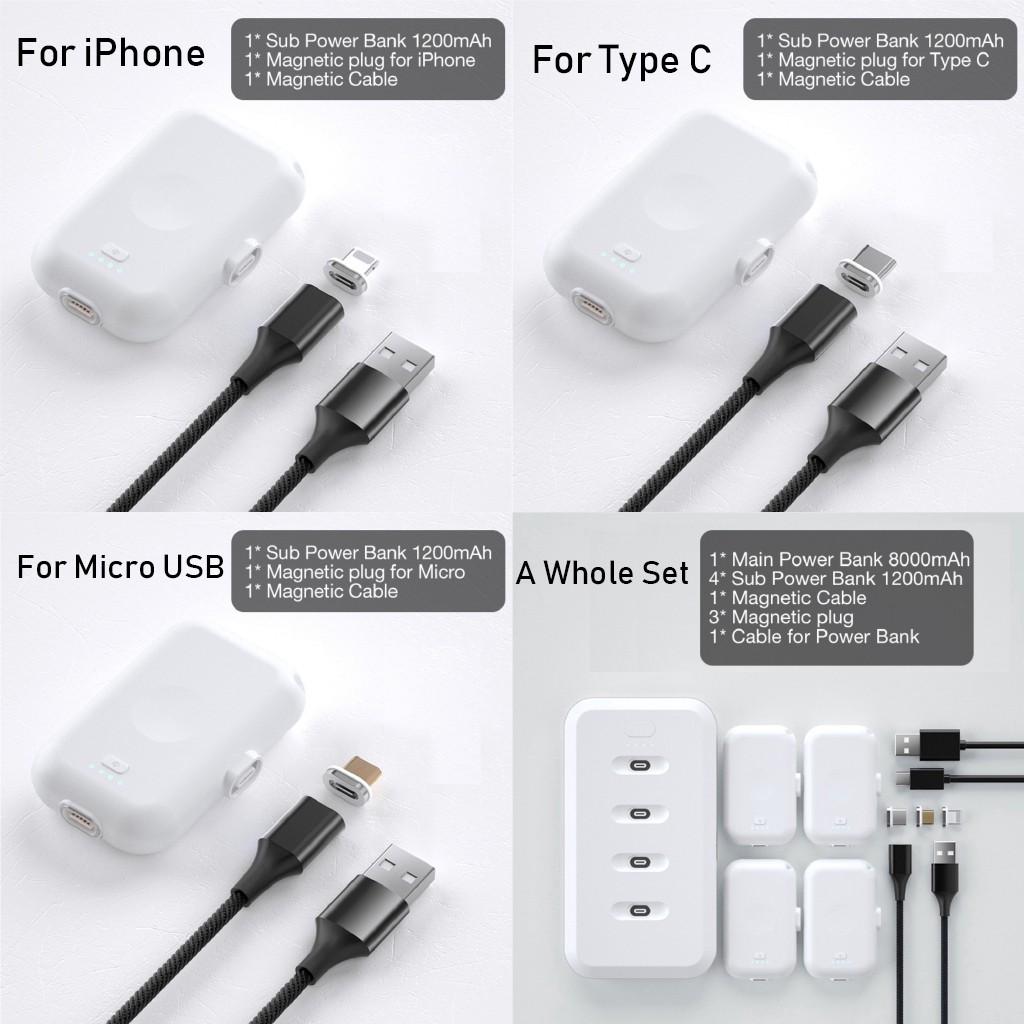 White And Black Apple Power Bank 15cm Usb Data Cable For Apple