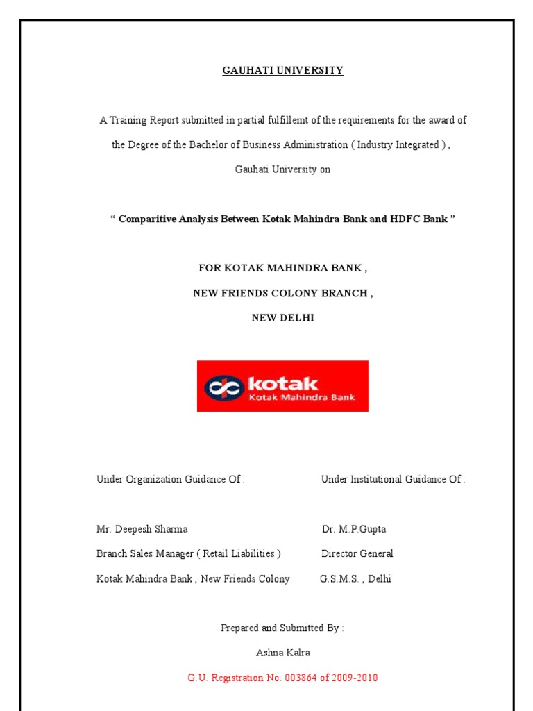 Kotak Summer Internship Project Reserve Bank Of India Banks