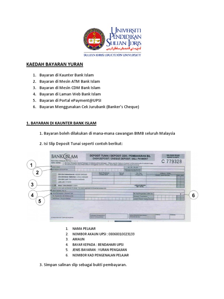 Kaedah Bayaran Yuran Upsi